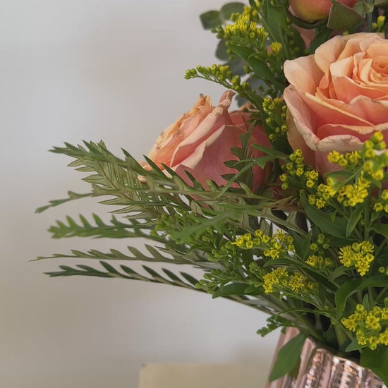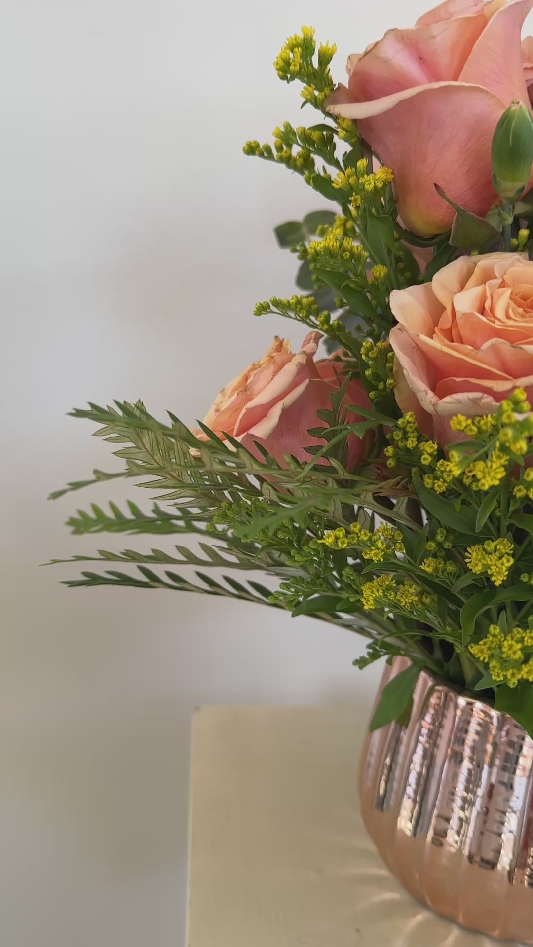 Enjoy this beautiful arrangement in a rose gold ceramic vase as the center of your Thanksgiving feast.